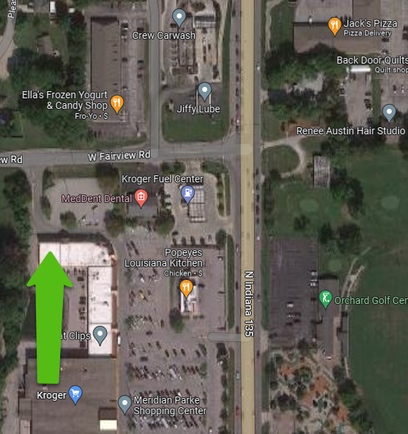 on the corner of W Fairview Rd and N State Rd 135.